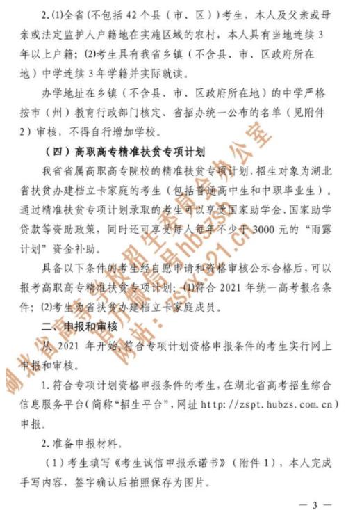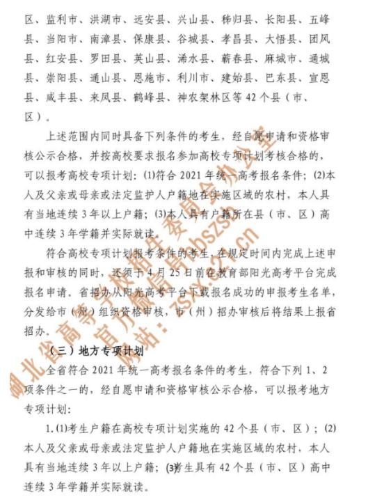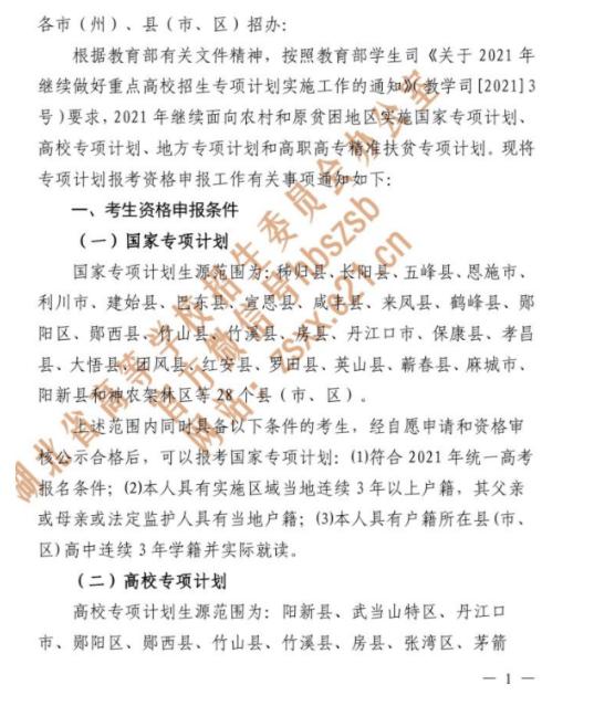 2021年湖北普通高校招生专项计划报考资格申报工作的通知已经发布,为方便考生了解情况,现将有关事宜通知如下: