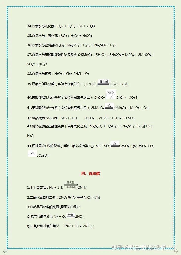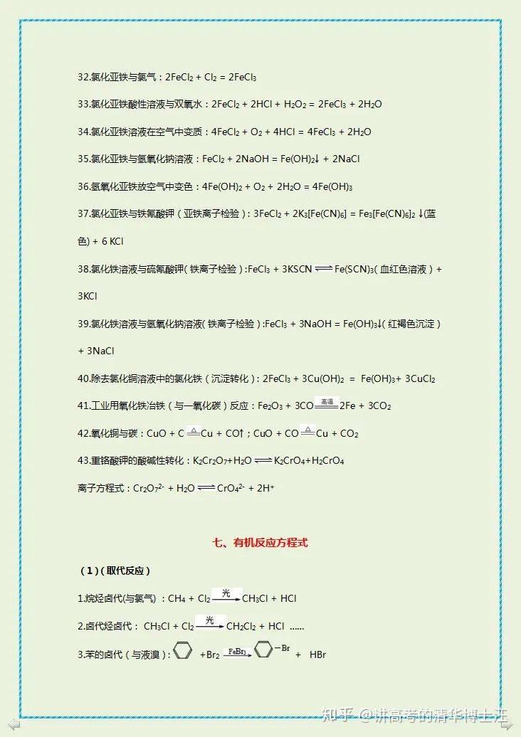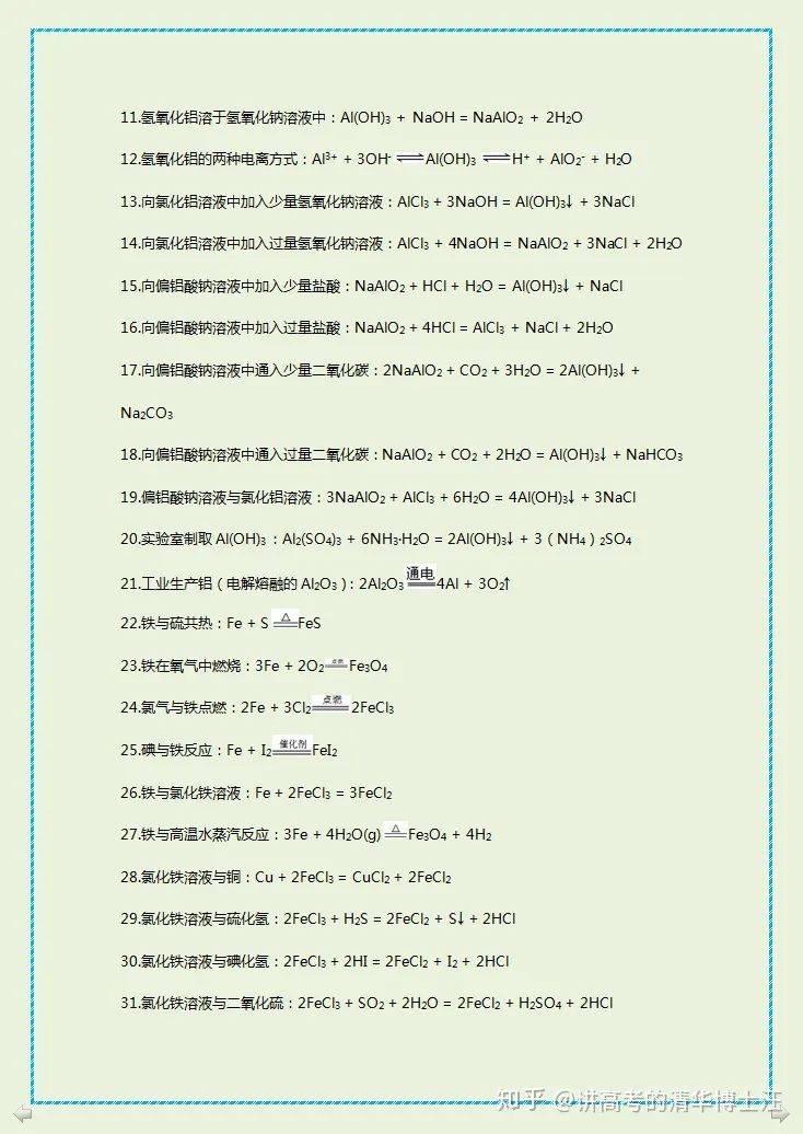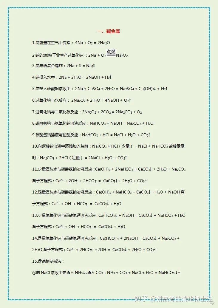今天给大家分享的干货是高中化学常考方程式大全。化学这个方程式啊,还是比较重要的,有的比较特殊的还需要记一下,下面给大家分享化学常考的方程式!已分类!