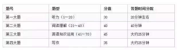 备注:没有听力题的省份,答题时间可以进行相应调整。