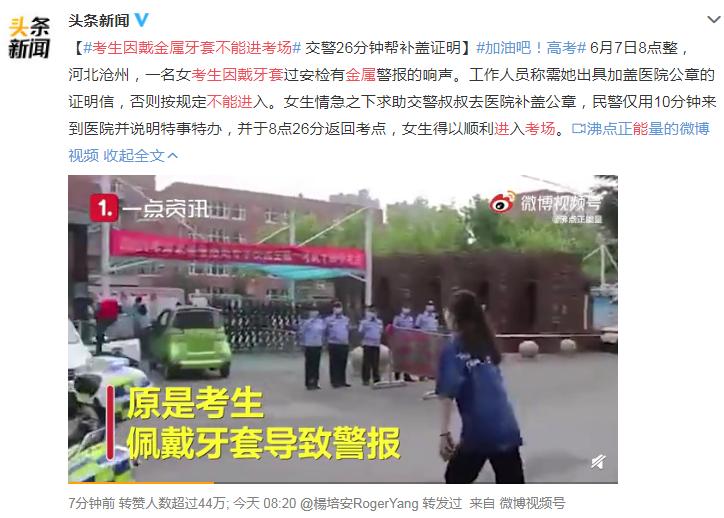 经历过高考的人们都知道,高考前的各项安检是非常严格且细致的,考试中也纪律严明。就在7日,高考第一日,河北沧州的一名考生,就因戴着金属牙套还触发了警报。