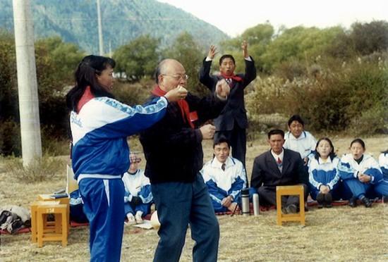 张先翱在西藏灵芝为辅导员讲授出队旗时执旗姿势。