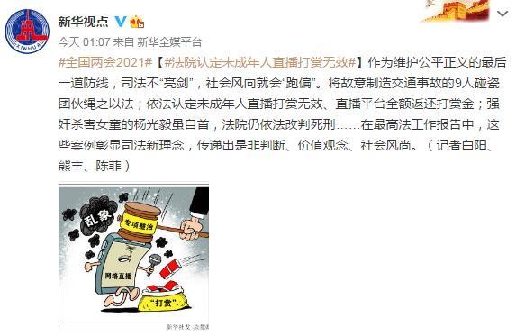 作为维护公平正义的最后一道防线,司法不“亮剑”,社会风向就会“跑偏”。将故意制造交通事故的9人碰瓷团伙绳之以法;依法认定未成年人直播打赏无效、直播平台全额返还打赏金;强奸杀害女童的杨光毅虽自首,法院仍依法改判死刑……在最高法工作报告中,这些案例彰显司法新理念,传递出是非判断、价值观念、社会风尚。(记者白阳、熊丰、陈菲)