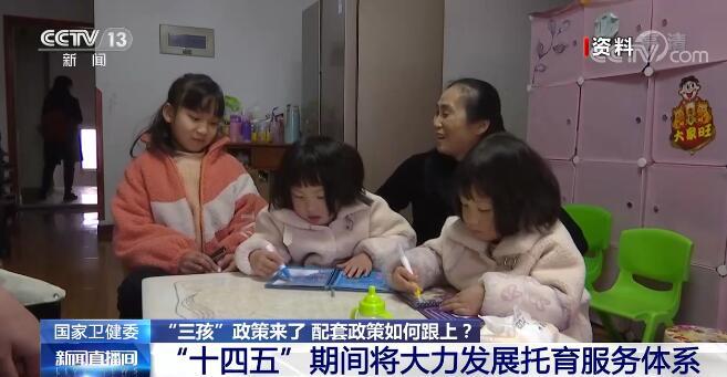 央视网消息:记者今天(6月3日)从国家卫生健康委获悉,“十四五”期间,我国将大力发展托育服务体系,每千人口拥有3岁以下婴幼儿托位数由目前的1.8个提高到4.5个。