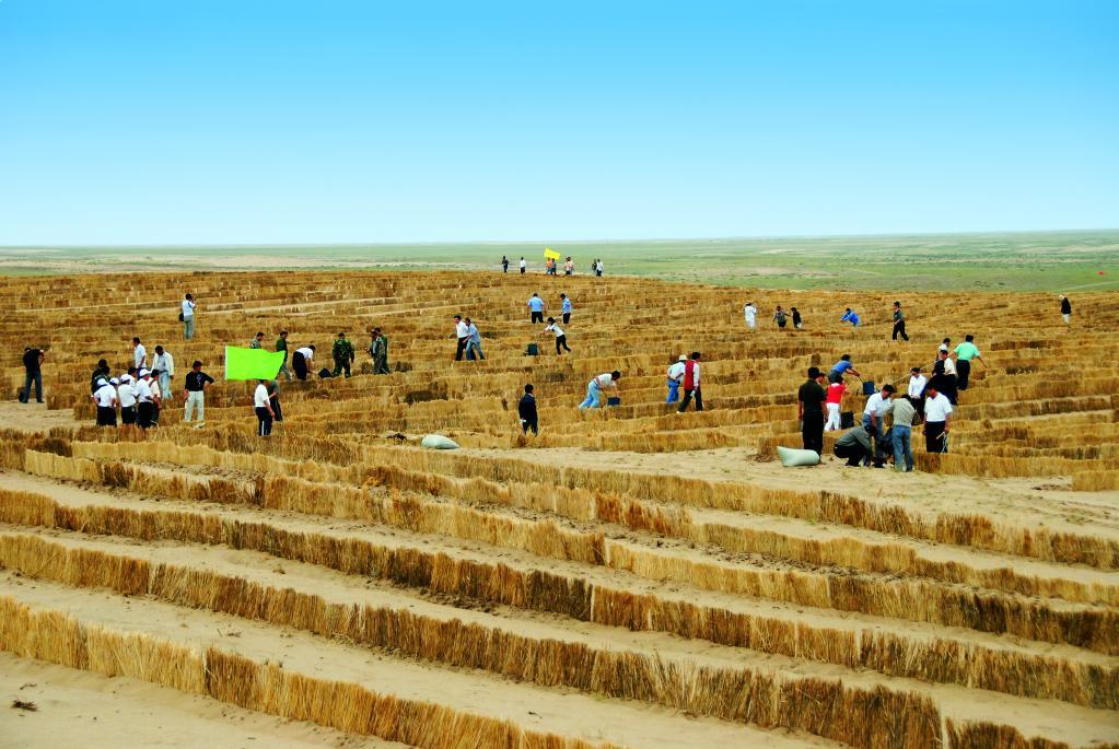 内蒙古自治区呼伦贝尔市陈巴尔虎旗群众在呼伦贝尔沙地设置沙障(新华社记者李云平 摄)