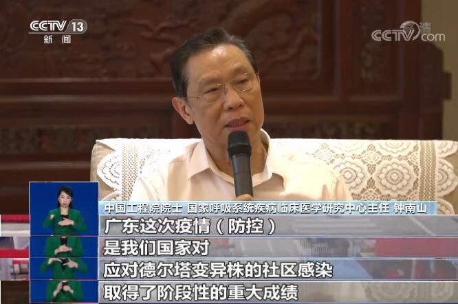 中国工程院院士 国家呼吸系统疾病临床医学研究中心主任 钟南山:广东这次疫情防控是国家应对德尔塔变异株的社区感染,取得的阶段性的重大成绩。