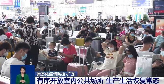 广州、佛山自7月3日零时起取消“持48小时核酸阴性证明出省”管控措施。公路、铁路、民航、港口码头等交通站场实行对旅客检测体温措施,乘客入内需要戴口罩和扫码进站。广州市辖区范围设立的货车司机核酸检测点自7月3日起同步撤销。与此同时,广州有序开放电影院、剧院、旅游景区密闭室内部分、各类医疗机构、餐饮场所等公共场所,密闭娱乐场所按最大接待能力的75%实行限流。