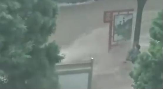 ·河北武安遭遇暴雨天气,街头瞬间成河,市民抱树自救,轿车被激流冲走。
