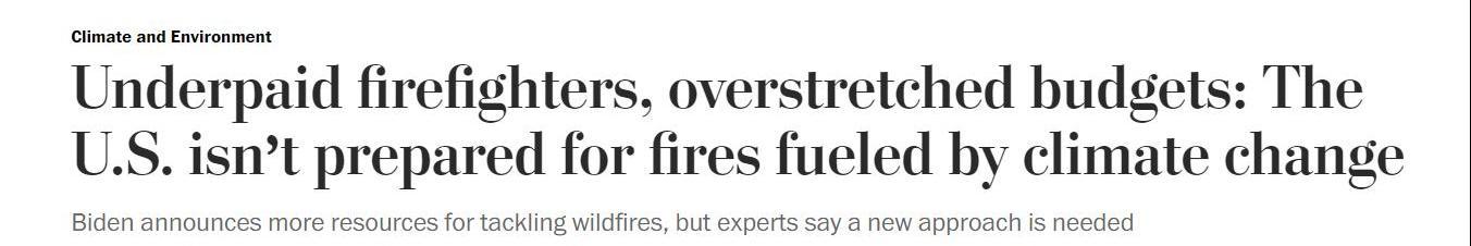 △ 《华盛顿邮报》报道《消防员工资过低、预算捉襟见肘:美国没有为因气候变化而加剧的火情做好准备》