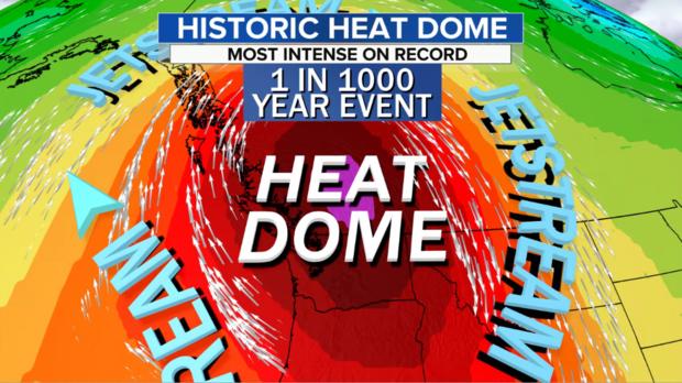 有学者指出,造成今年极端天气的“热穹顶”现象,在太平洋西北地区出现极为反常,被美媒称为“千年一遇”。