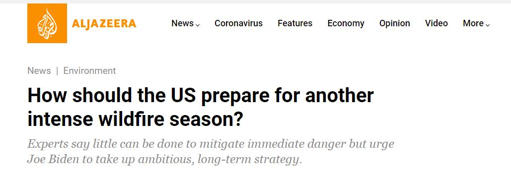 △ 半岛电视台报道《美国应该如何应对又一个山火季?》
