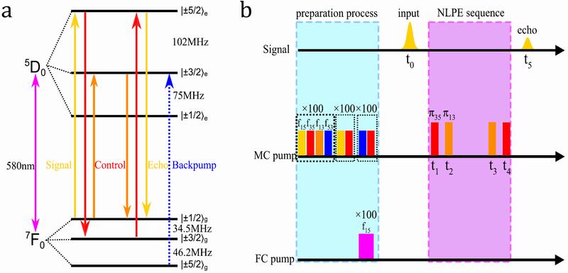 此前最低噪声的光子回波实验是法国国家科学中心团队于2014年完成的,其背景噪声超过1个光子,无法满足量子信息应用的需求。中国科学技术大学科研团队基于四能级的原子系统提出了新的方案。该方案创造性地结合了不同频的控制脉冲以及两次重聚过程,使得发射光子回波的上能级与残留布居的上能级是不同能级,所以可通过频谱滤波严格消除自发辐射噪声。研究组还在掺铕硅酸钇晶体中实现了这一方案,实测的背景噪声为0.0015光子,比前人光子回波实验的噪声降低了670倍。在单光子信号入射的条件,回波的信噪比达42.5,光量子比特的存储保真度达95.2%。