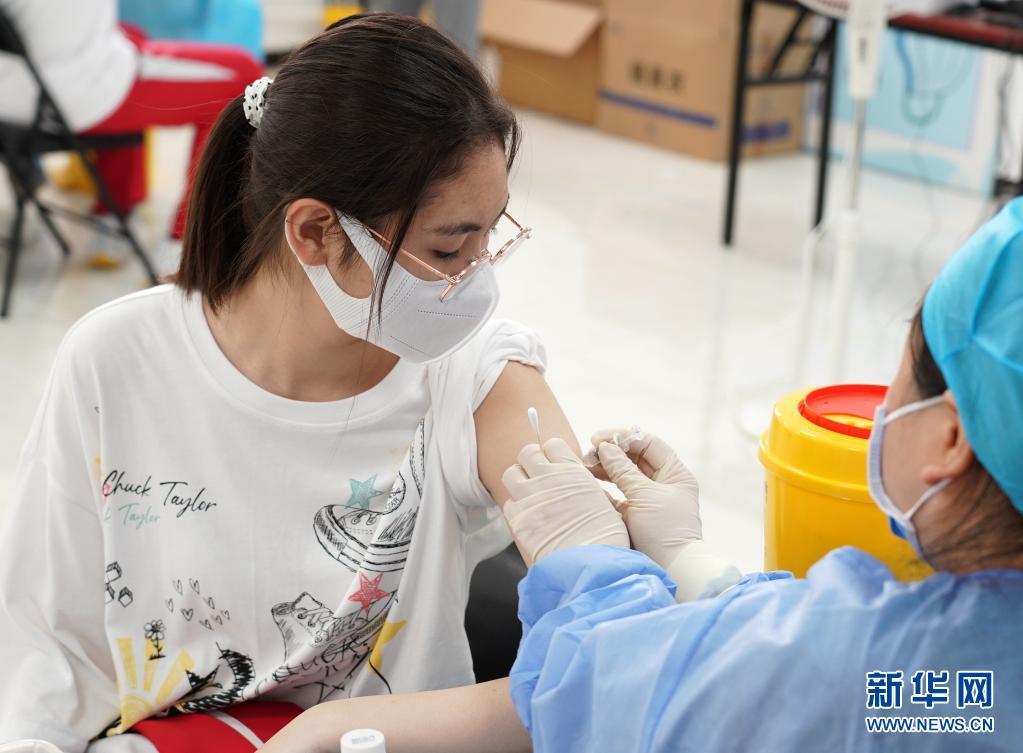 7月21日,医护人员为首都师范大学附属中学永定分校的学生接种新冠病毒疫苗。新华社记者 张晨霖 摄