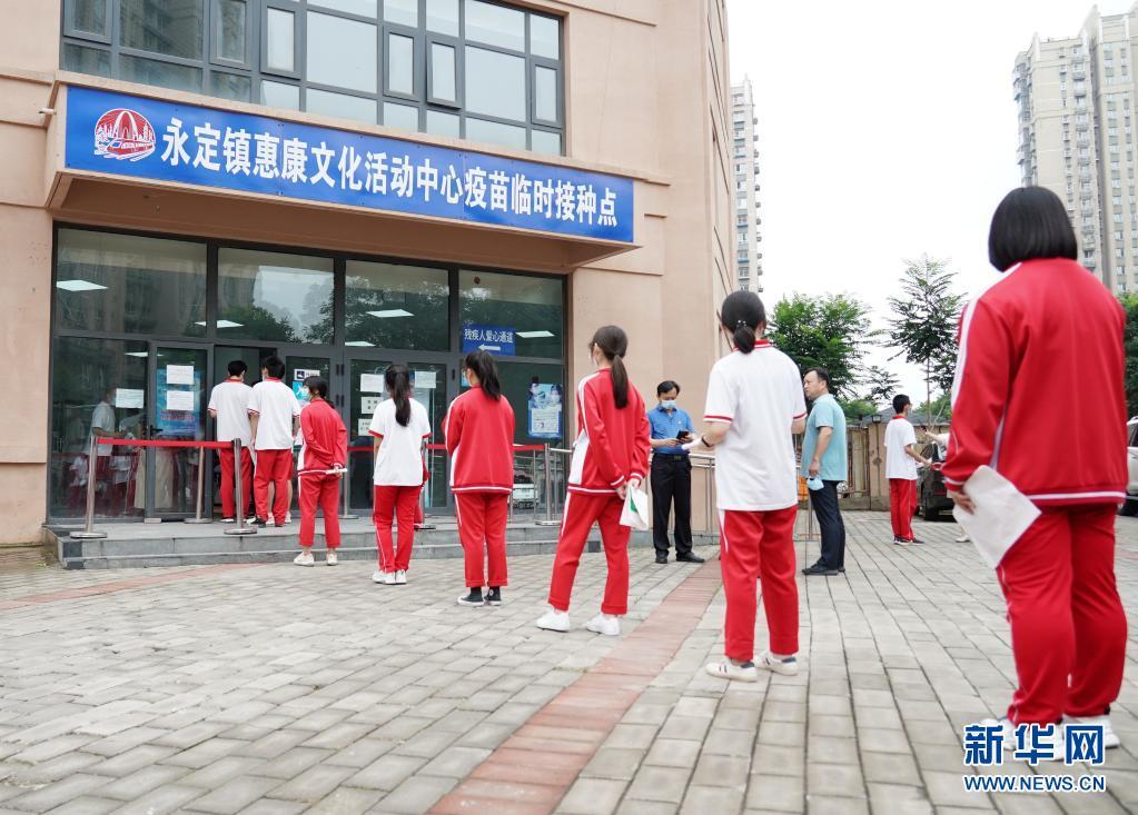 新华社北京7月21日电(记者侠克、庞元元)根据国家总体部署,北京市已于7月20日起开展12岁至17岁人群新冠病毒疫苗免费接种工作。21日上午,记者来到北京市门头沟区永定镇惠康临时接种点,看到来自首都师范大学附属中学永定分校高二、高三的学生正在有序进行疫苗接种。