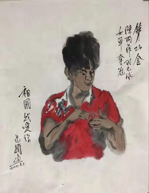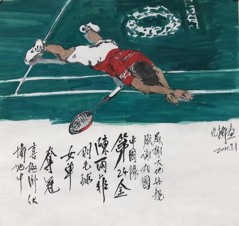 央视网消息:我奥运军团8月1日在东京奥运会上夺得第24金,陈雨菲勇夺羽毛球女单冠军。著名画家范扬以拥抱大地、感恩祖国为蕴意,将陈雨菲夺冠后的动人画面精彩呈现。