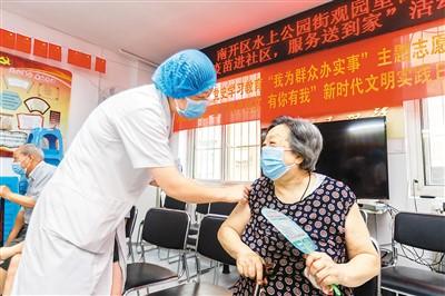 近日,天津市南开区安排辖区医疗机构的医护人员深入社区开展服务,把新冠疫苗送到居民的家门口,解决了年龄大、出行不便等群众的接种难题。