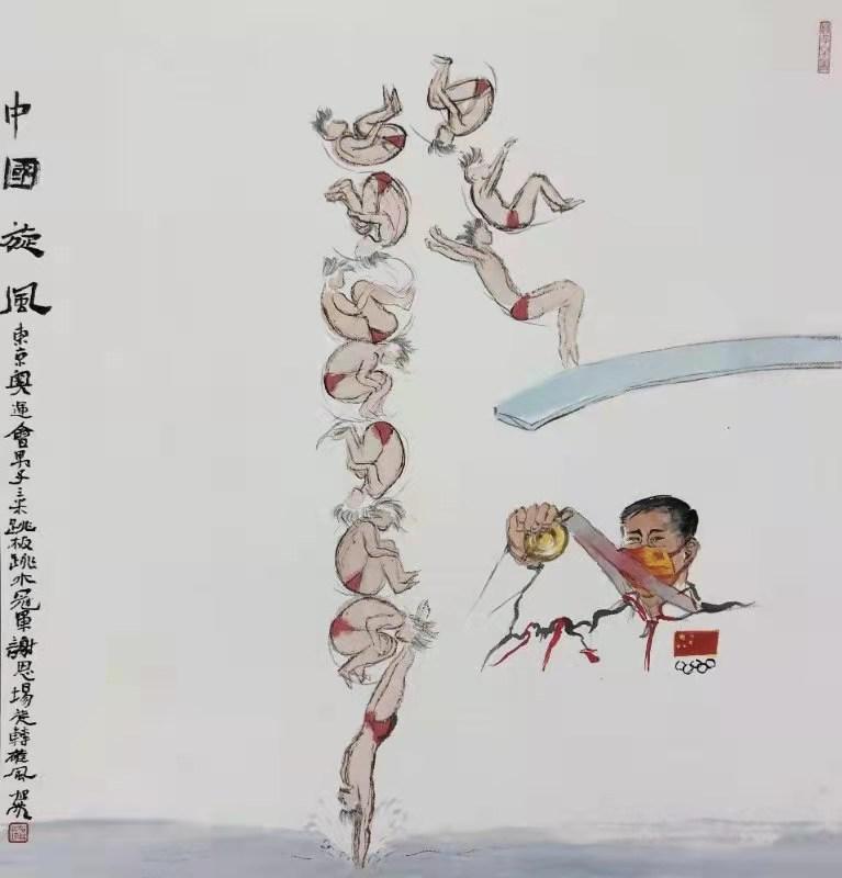 东京奥运会上“中国旋风”劲刮,我选手夺金热潮依然。8月3日晚上,著名画家、“为奥运喝彩”艺术写生团团长何加林再写我夺金英豪。何加林笔下生风,将三位夺金选手的夺冠时刻描绘,呼之欲出。