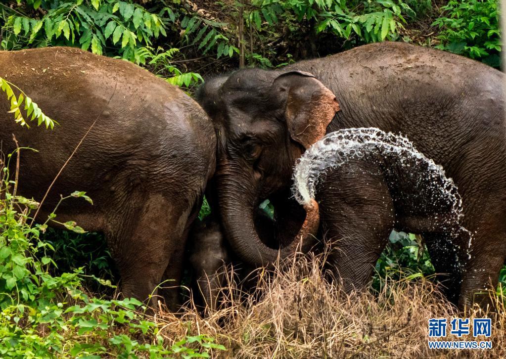 8月9日,象群在云南省玉溪市元江县境内的丛林中觅食。新华社记者 江文耀 摄