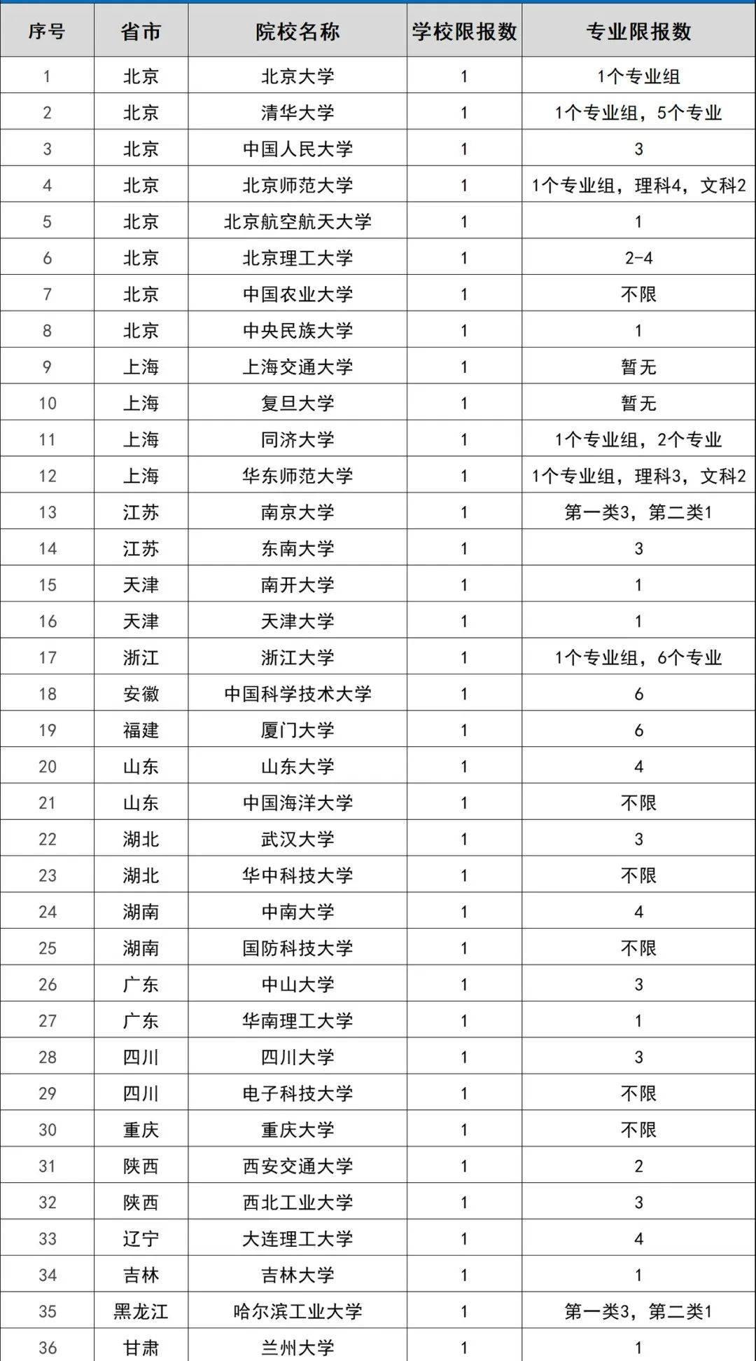 北京大学、清华大学、浙江大学、华东师范大学比较特殊按照专业组报名,可以在专业组内选择多个专业报名。