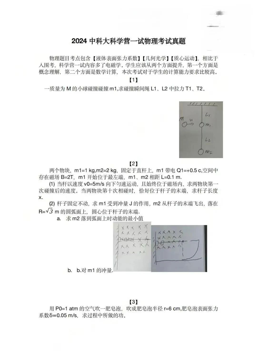 2024中科大少年班及少创班一试物理试题出炉,难度如何?